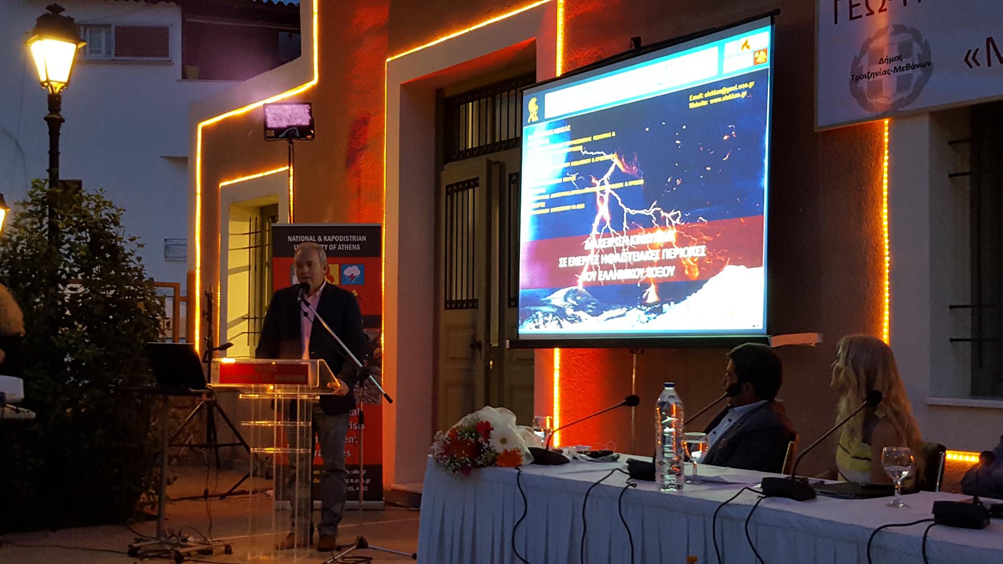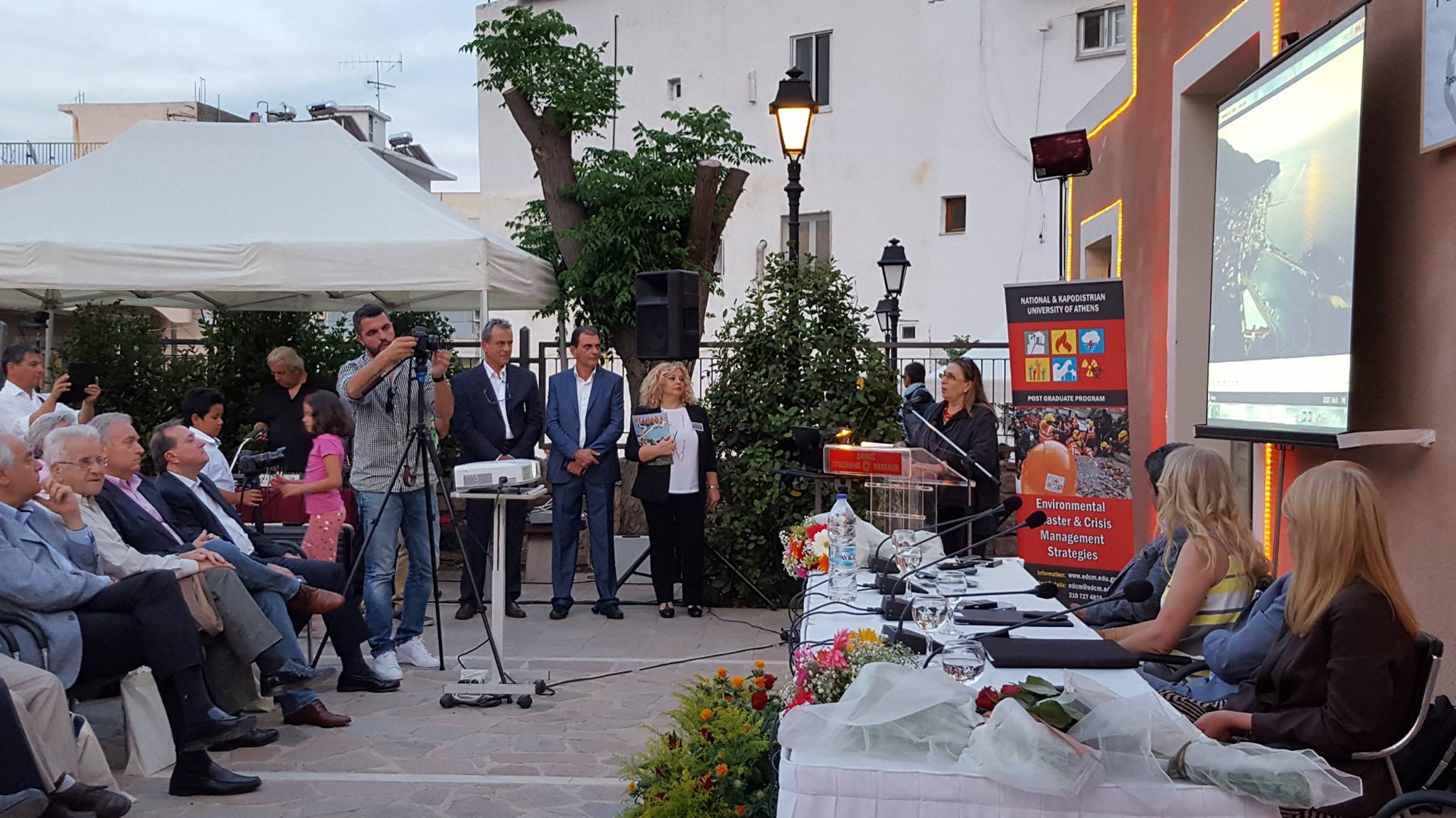 Τις εναρκτήριες ομιλίες του Συνεδρίου πραγματοποίησαν ο καθηγητής του Ε.Κ.Π.Α, πρόεδρος του Ο.Α.Σ.Π και Διευθυντής του ΠΜΣ «Στρατηγικές Διαχείρισης Περιβάλλοντος, Καταστροφών και Κρίσεων» κ. Ευθύμιος Λέκκας και η επίκουρη καθηγήτρια κα Παρασκευή Νομικού. Επίσης παρευρέθησαν και χαιρέτησαν η Περιφερειάρχης Αττικής κα Ρένα Δούρου και η στιχουργός κα Λίνα Νικολακοπούλου.