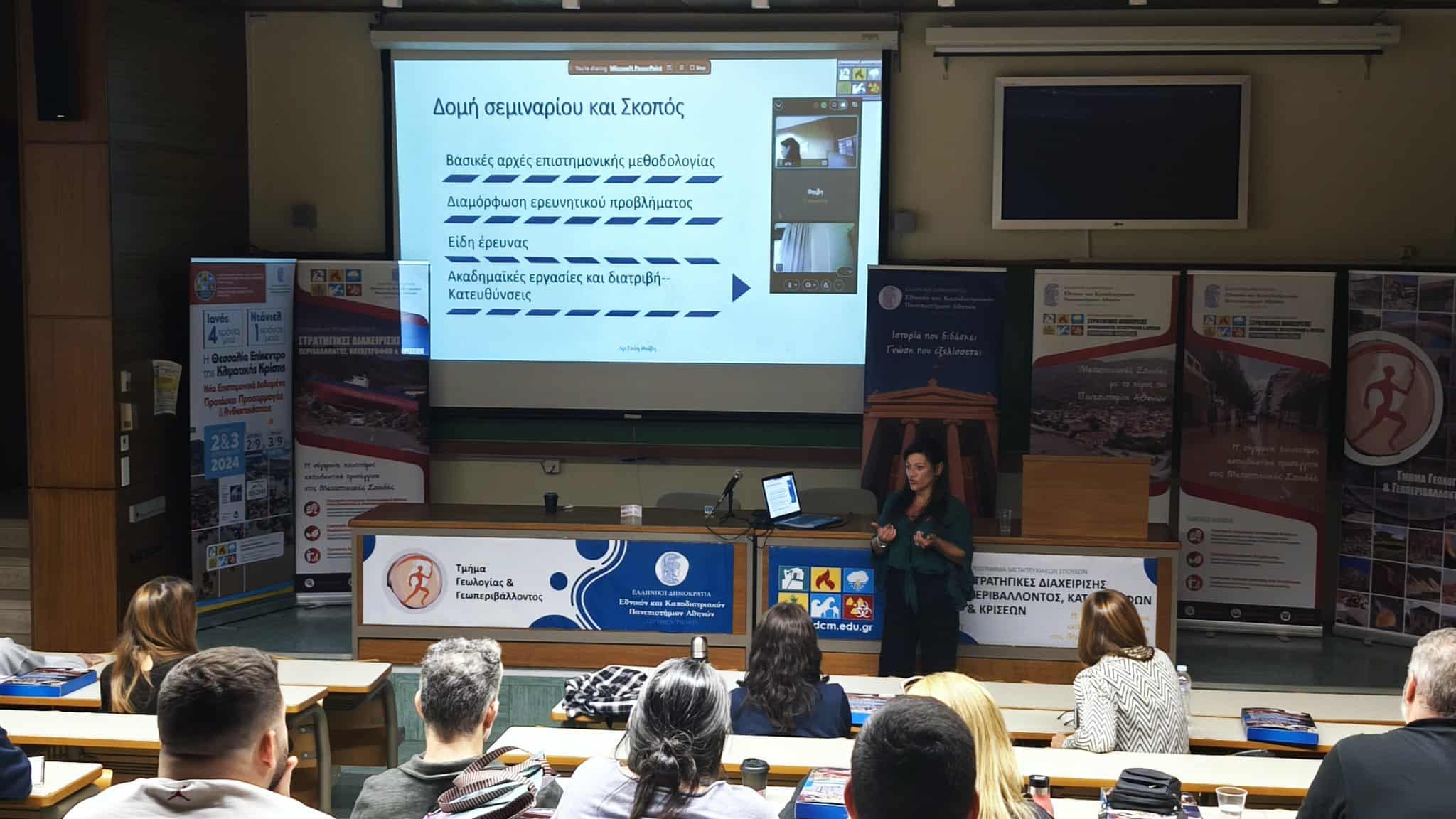 Η έναρξη του χειμερινού εξαμήνου έλαβε χώρα στο Αμφιθέατρο "Ιωάννης Δρακόπουλος" στις εγκαταστάσεις του Τμήματος Γεωλογίας και Γεωπεριβάλλοντος του Εθνικού και Καποδιστριακού Πανεπιστημίου Αθηνών και πραγματοποιήθηκε υβριδικά.